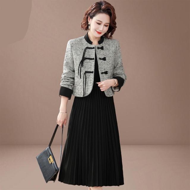套裙 裙子 上衣 新中式媽媽春裝連衣裙兩件套新款貴夫人中老年女春秋國風套裙