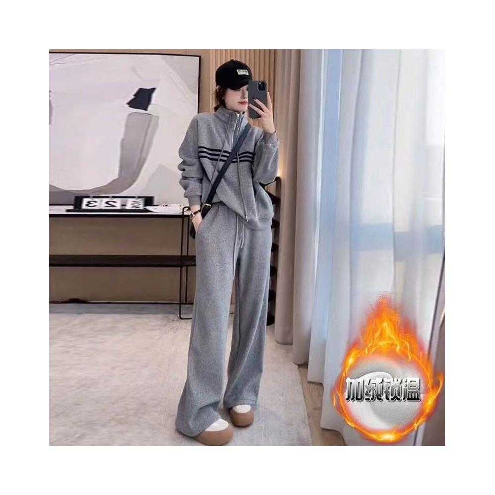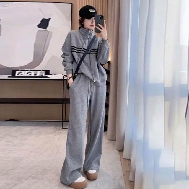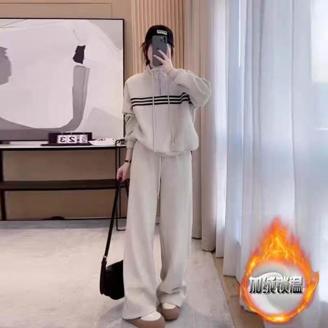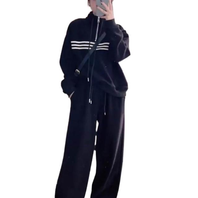 運動服套裝女春秋新款減齡時尚長袖加絨衛衣闊腿褲休閑兩件套 運動套裝 上衣 褲子