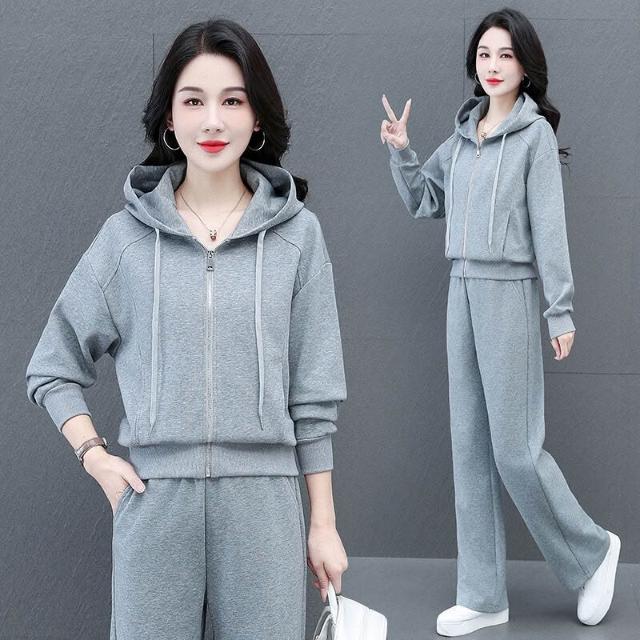 時尚休閑連帽運動套裝女士春秋新款兩件套戶外跑步服大碼女裝衛衣 運動套裝 上衣 褲子