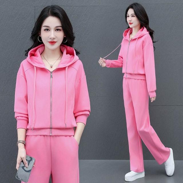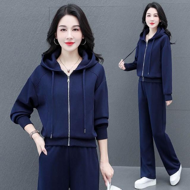 時尚休閑連帽運動套裝女士春秋新款兩件套戶外跑步服大碼女裝衛衣 運動套裝 上衣 褲子