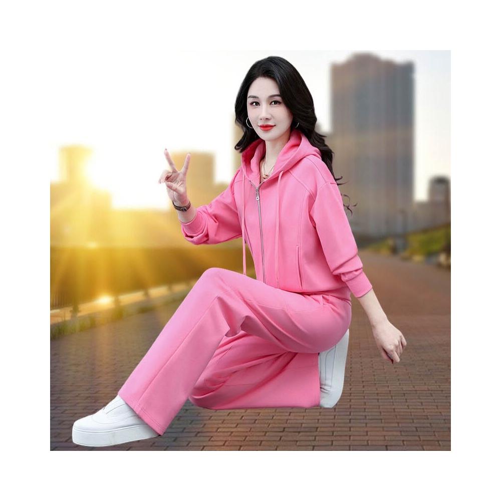 時尚休閑連帽運動套裝女士春秋新款兩件套戶外跑步服大碼女裝衛衣 運動套裝 上衣 褲子