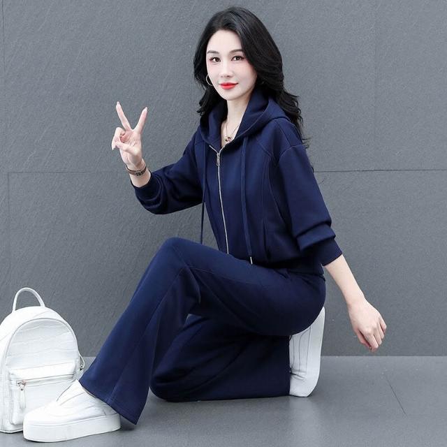 時尚休閑連帽運動套裝女士春秋新款兩件套戶外跑步服大碼女裝衛衣 運動套裝 上衣 褲子