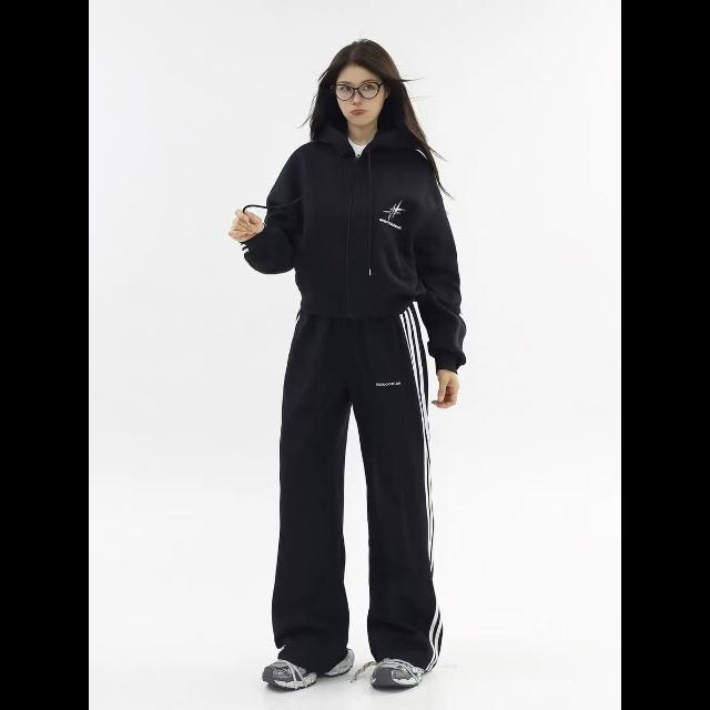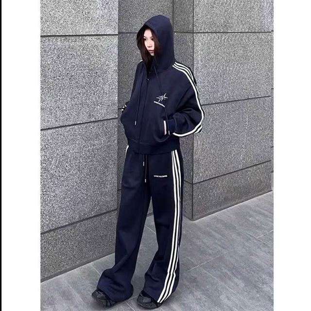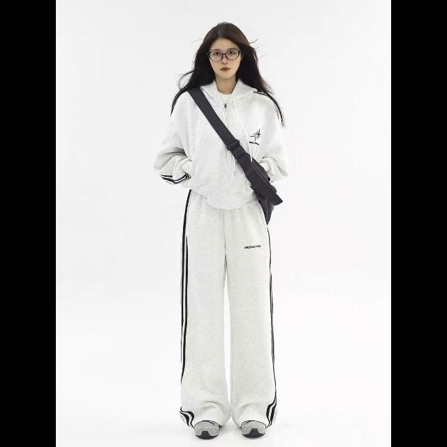美式高街運動服套裝女春秋季跑步時尚寬松韓版學生衛衣休閑兩件套 運動套裝 上衣 褲子
