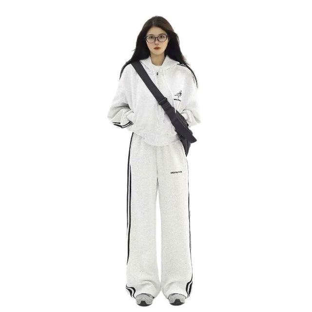 美式高街運動服套裝女春秋季跑步時尚寬松韓版學生衛衣休閑兩件套 運動套裝 上衣 褲子