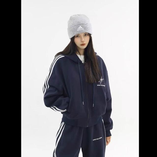 美式高街運動服套裝女春秋季跑步時尚寬松韓版學生衛衣休閑兩件套 運動套裝 上衣 褲子