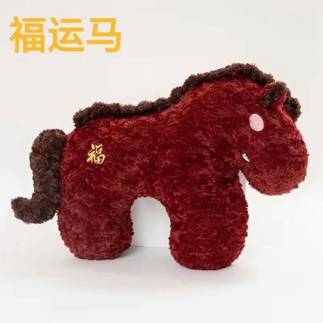創意福運萌馬抱枕新年喜慶沙發床上春節裝飾擺件2026年吉祥物靠枕