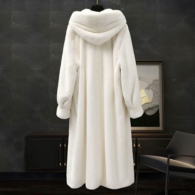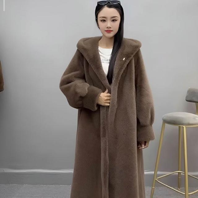 台灣熱銷 進口紫標天鵝絨貂皮大衣女整貂連帽中長款大碼仿水貂皮草外套顯瘦