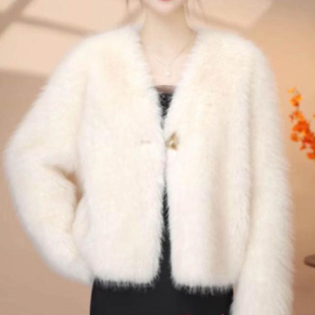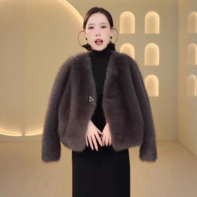 台灣熱銷 輕奢小香風短款環保皮草外套女秋冬洋氣保暖仿水貂毛毛氣質短外套