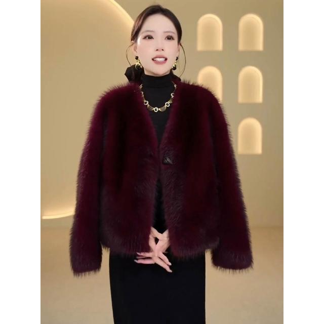 台灣熱銷 輕奢小香風短款環保皮草外套女秋冬洋氣保暖仿水貂毛毛氣質短外套