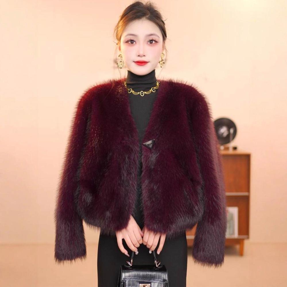 台灣熱銷 輕奢小香風短款環保皮草外套女秋冬洋氣保暖仿水貂毛毛氣質短外套