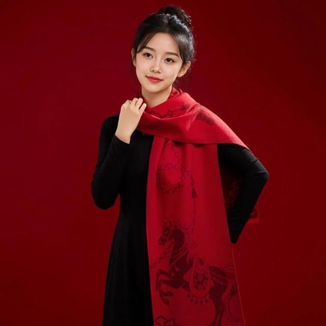 暖巢 馬年紅圍巾中國紅大紅色羊毛圍巾男女本命年圍巾年會禮品圍巾 圍脖 圍巾