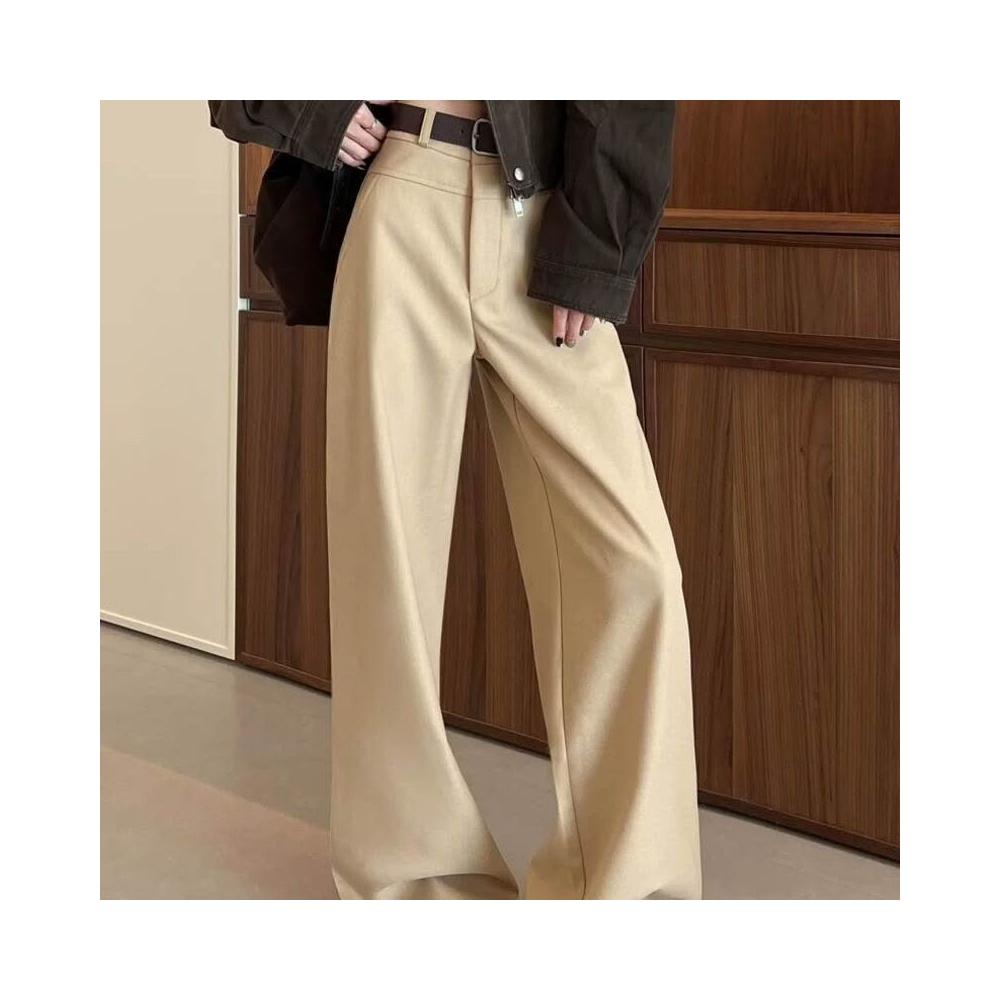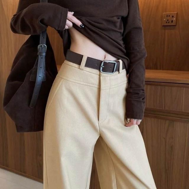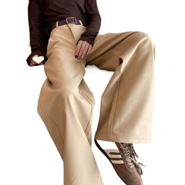 暖巢 卡其色闊腿褲女春秋季新款高腰垂感窄版顯瘦西裝褲休閑直筒褲