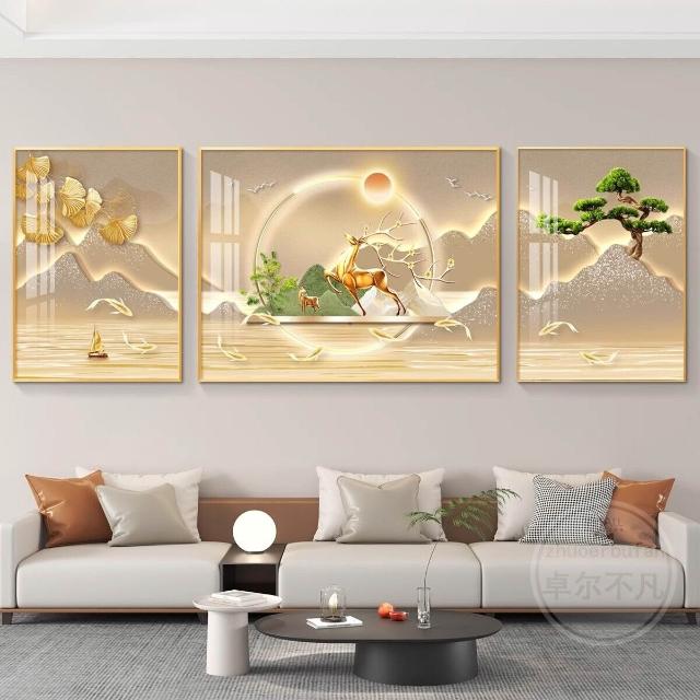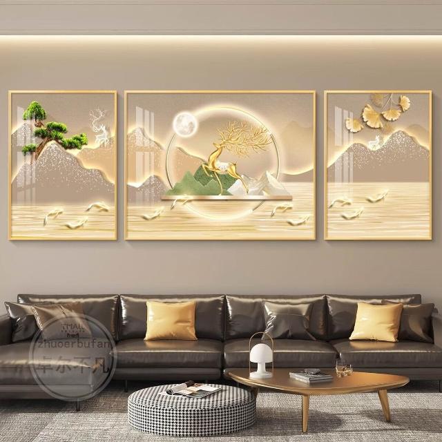 暖巢 輕奢客廳裝飾畫沙發背景墻掛畫壁畫簡約現代高級感山水畫大氣墻畫