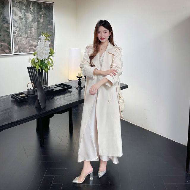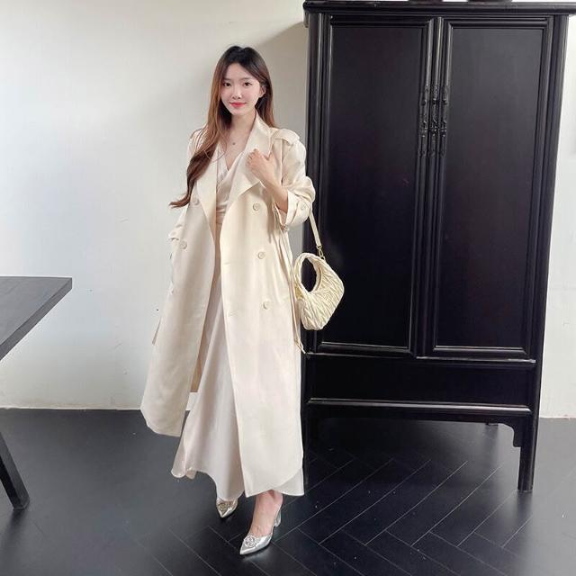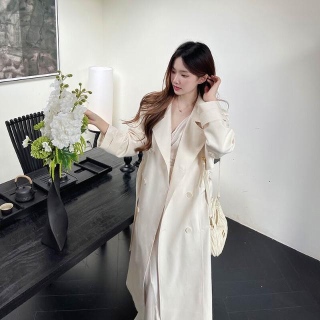 秋日氛圍女神溫柔高級感氣質風衣外套女春秋冬名媛風純色長款大衣 春秋外套