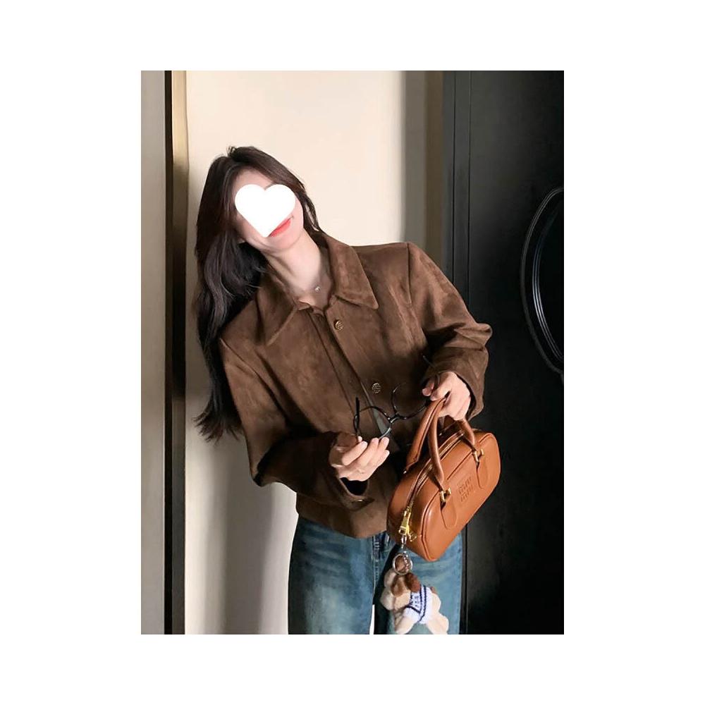 咖色鹿皮絨短款外套女春秋新款韓系美拉德復古小個子休閑夾克上衣 春秋外套