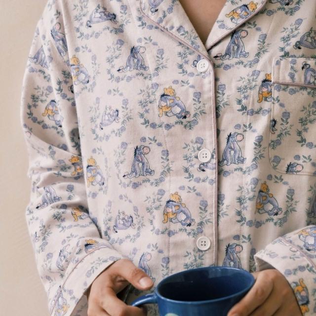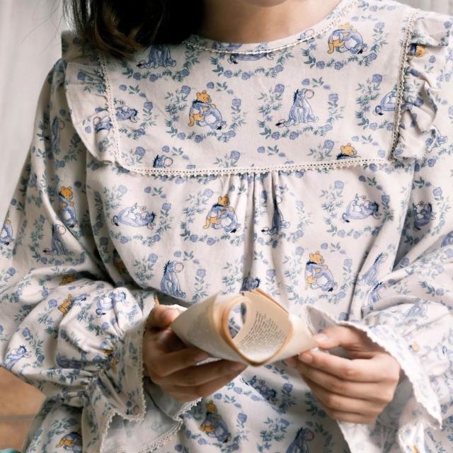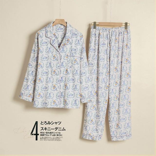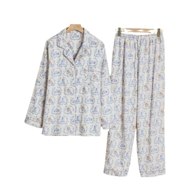 森系田園風少女春秋翻領磨毛睡衣秋季女純棉長袖保暖家居服套裝