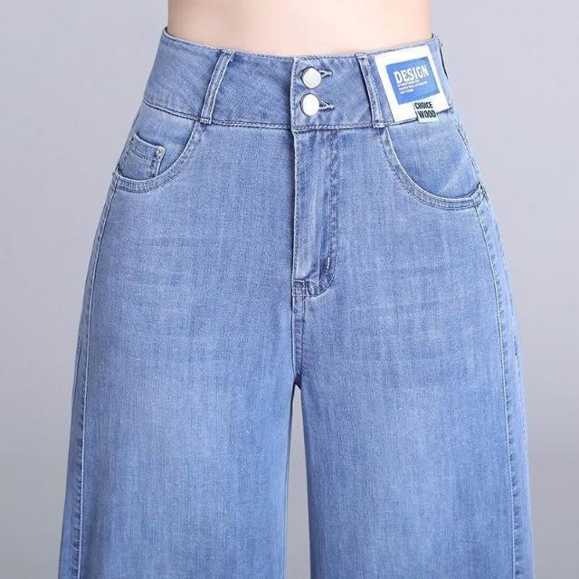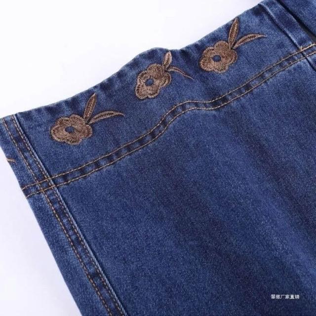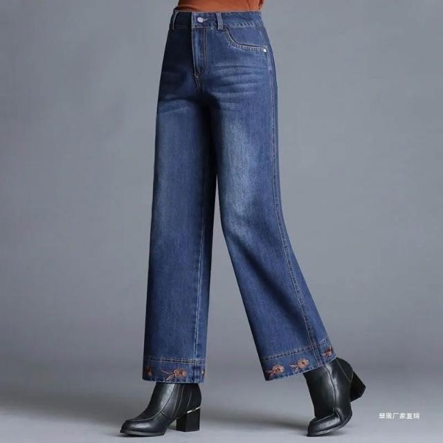 薄款闊腿牛仔褲女春秋新款高腰顯瘦寬松民族風刺繡九分直筒褲