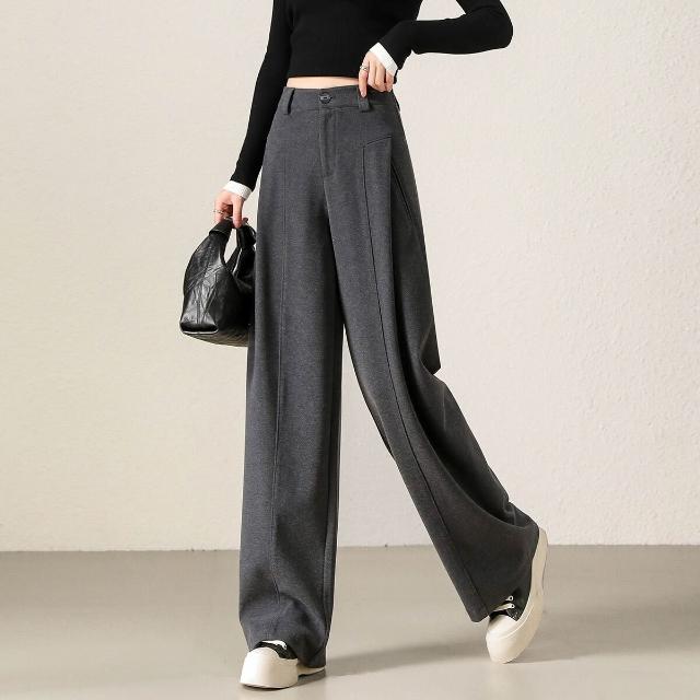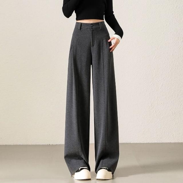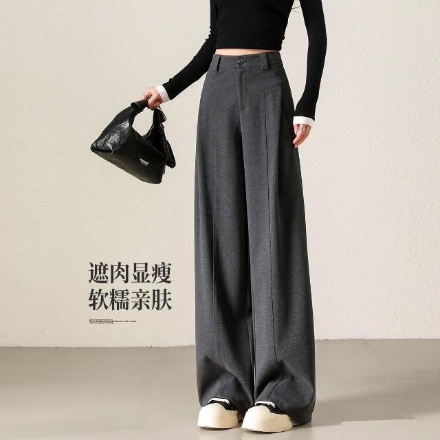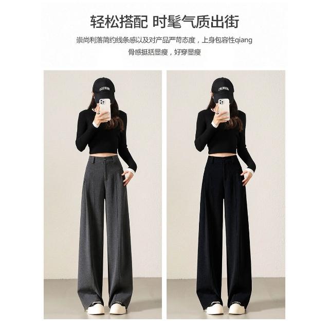 高腰垂感休閑直筒褲女年春秋新款顯瘦寬松簡約時尚百搭闊腿褲