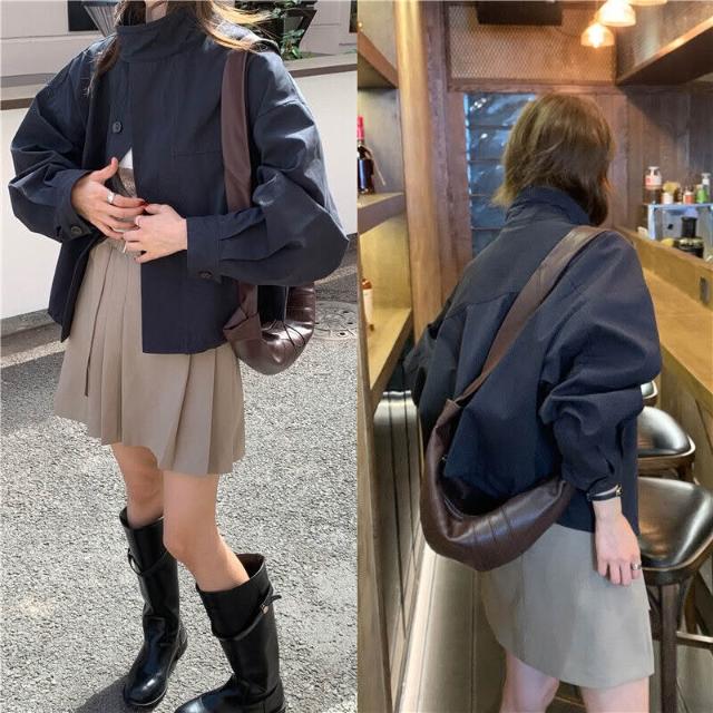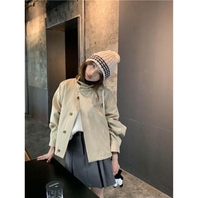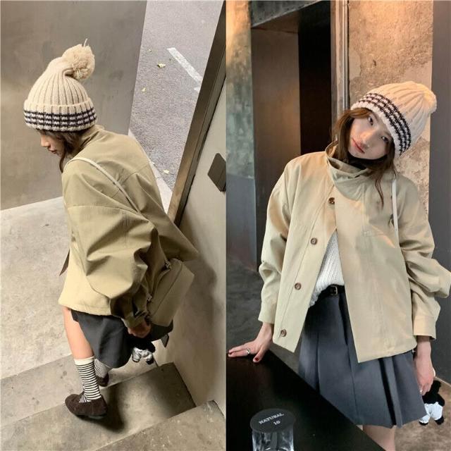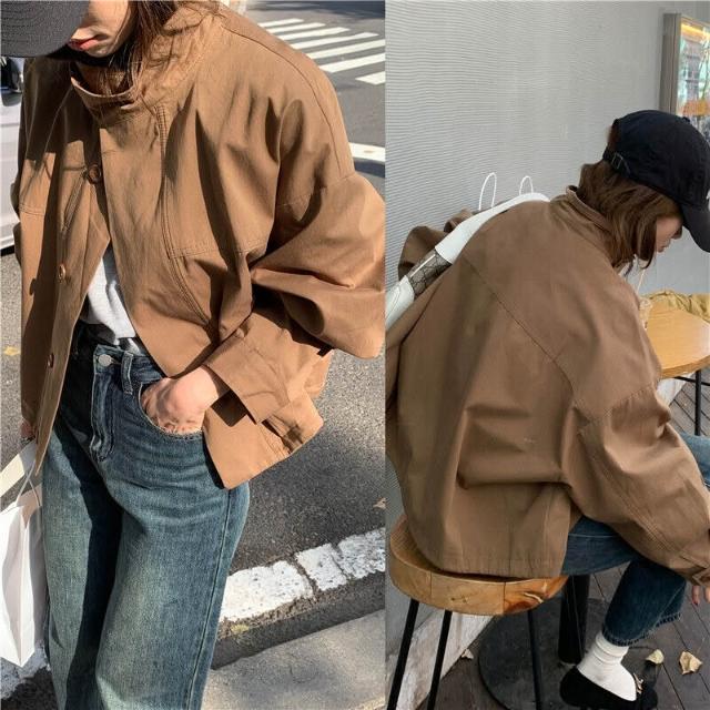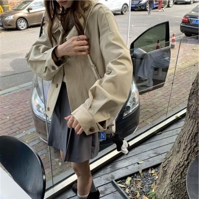 實拍韓版chic簡約休閑百搭寬松短款風衣外套早春長袖上衣女55790
