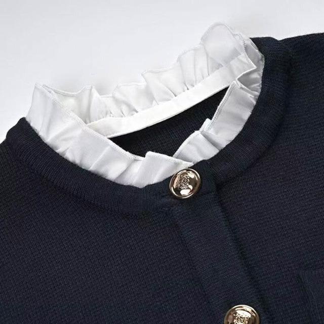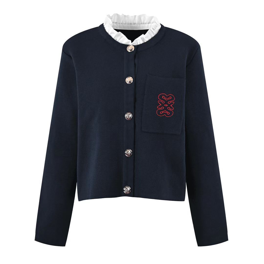 法式2026早春新款木耳邊可拆卸領字母刺繡外套針織毛衣開衫女秋冬