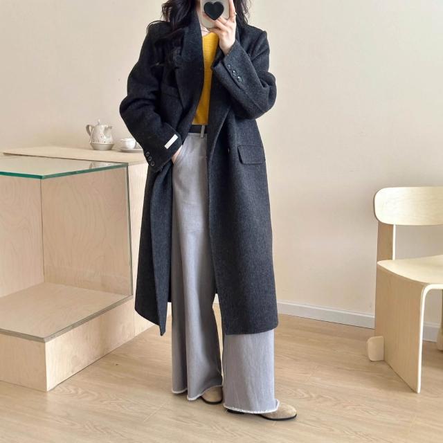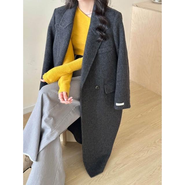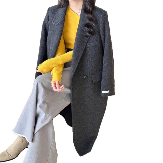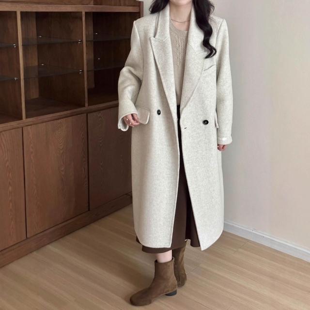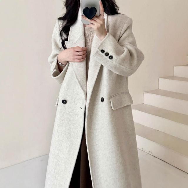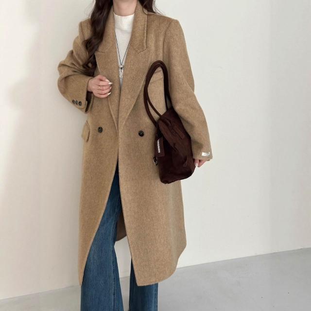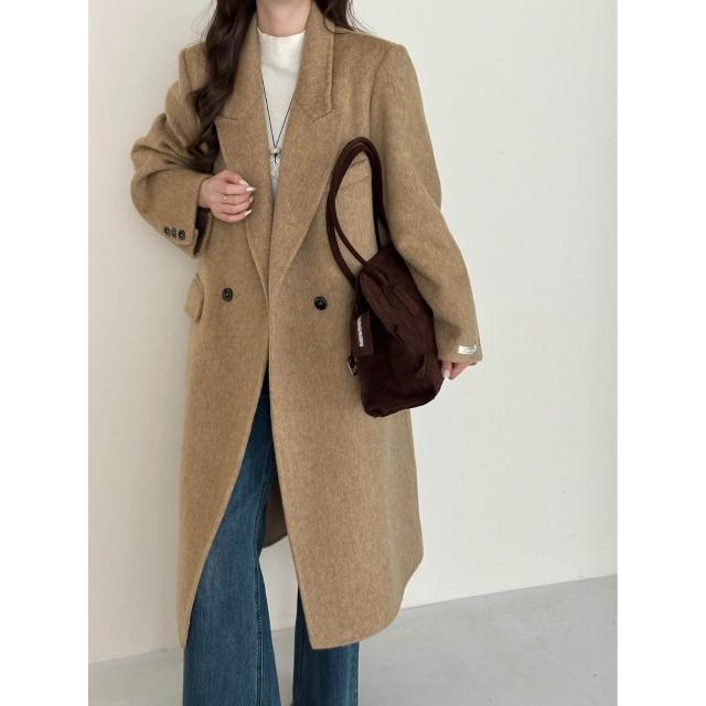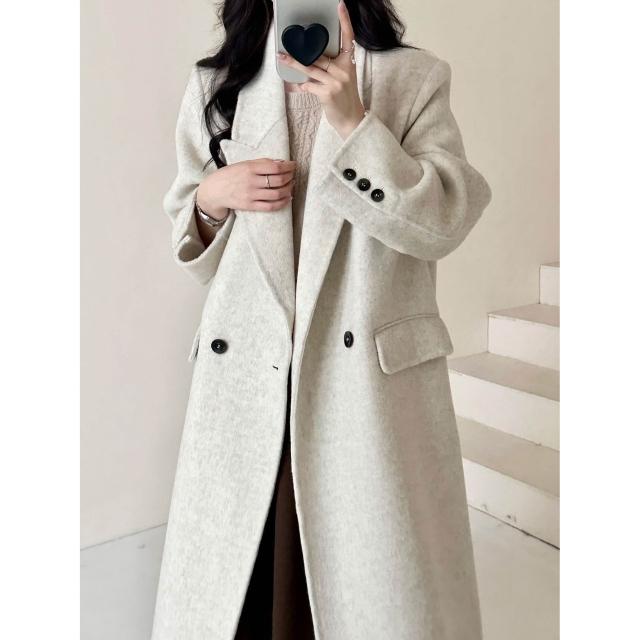 氣質墊肩休閑秋冬新款雙面羊絨大衣女正肩顯瘦長款羊毛呢外套