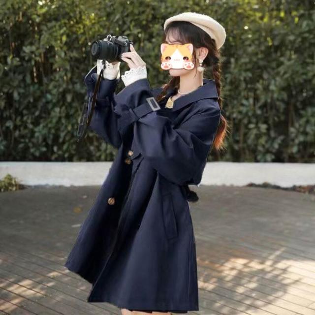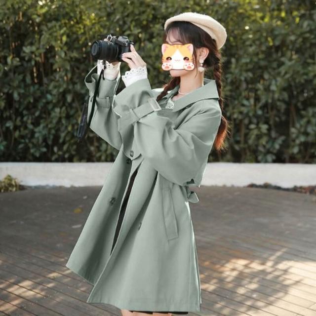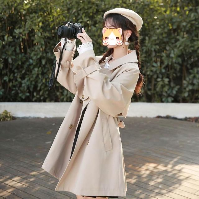 卡其色中長款風衣外套女春秋新款小個子日系薄款休閑氣質大衣