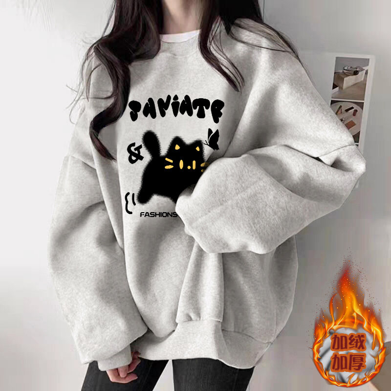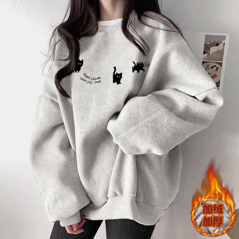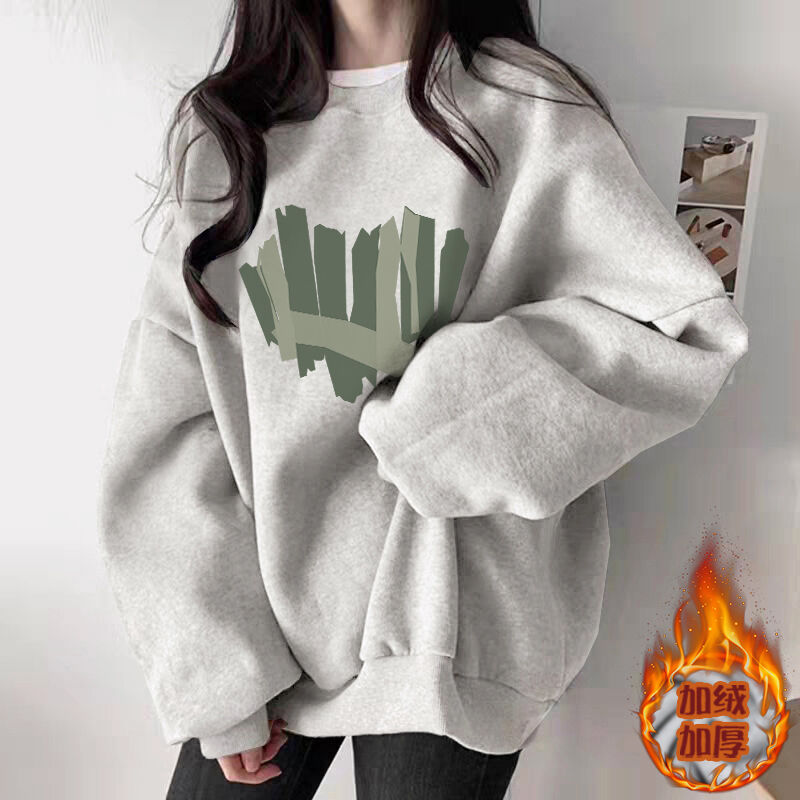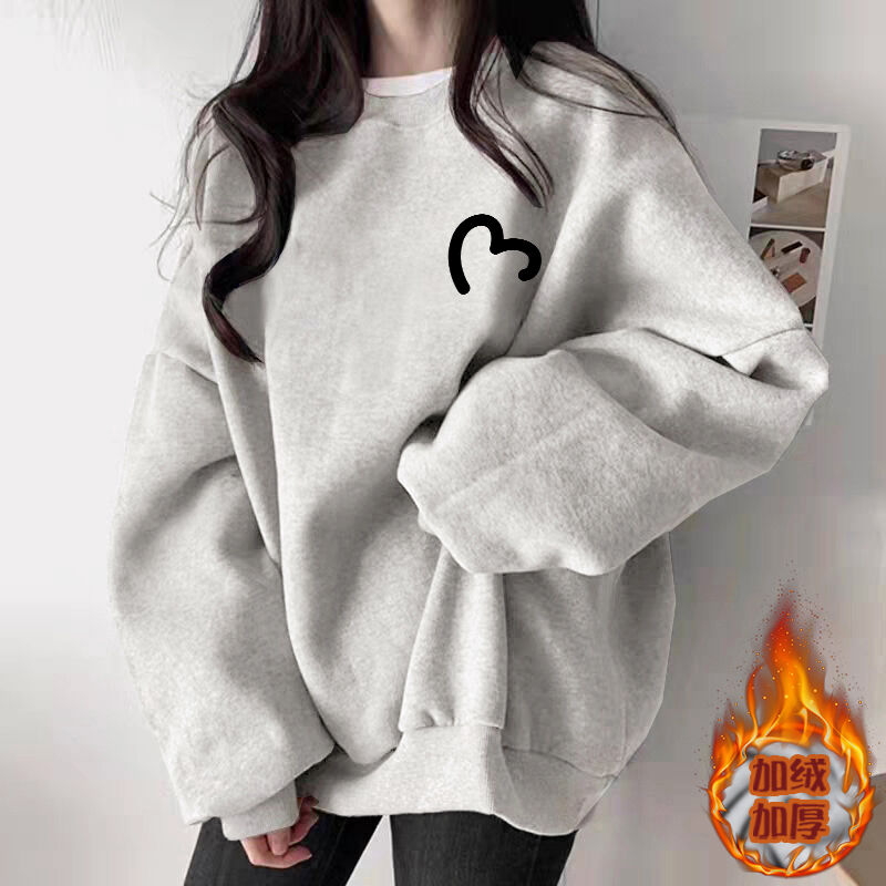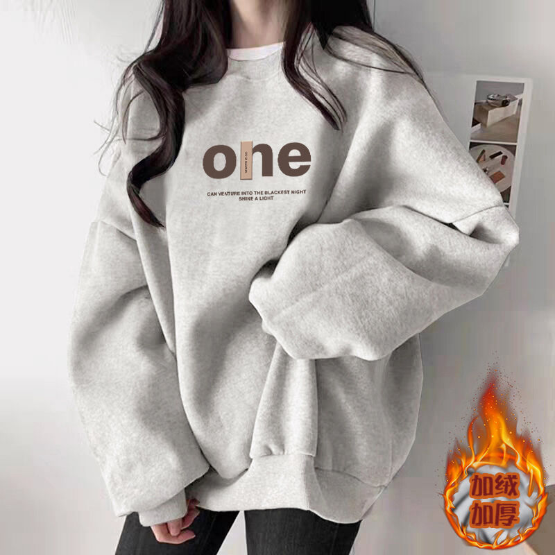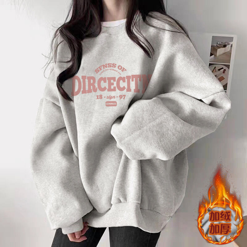 秋季白灰色無帽衛衣女新款爆款時尚洋氣衣服圓領加絨長袖上衣