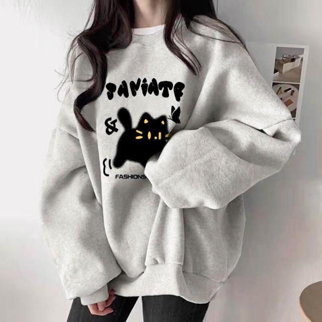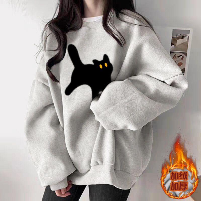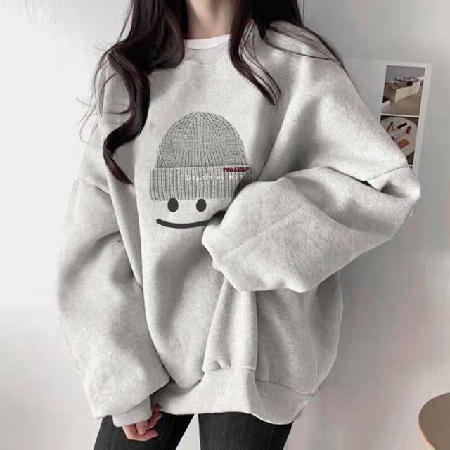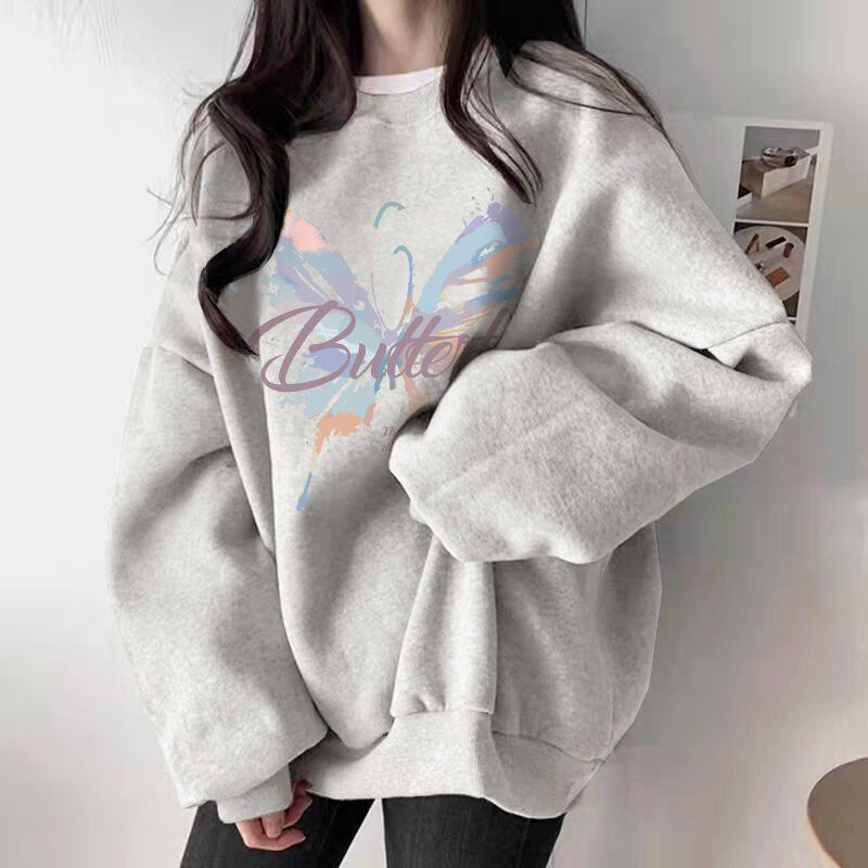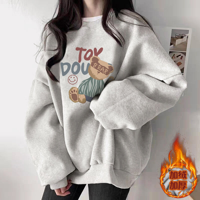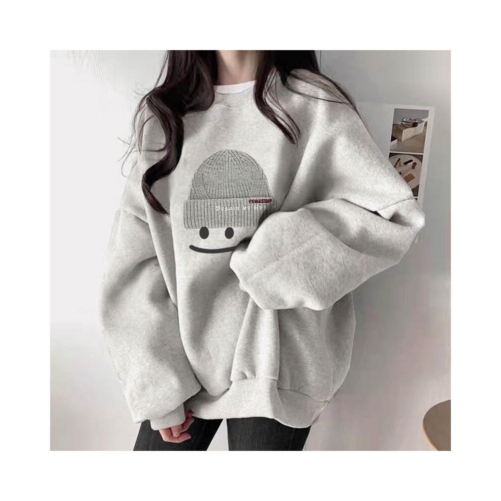 秋季白灰色無帽衛衣女新款爆款時尚洋氣衣服圓領加絨長袖上衣