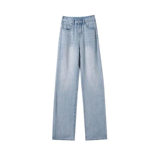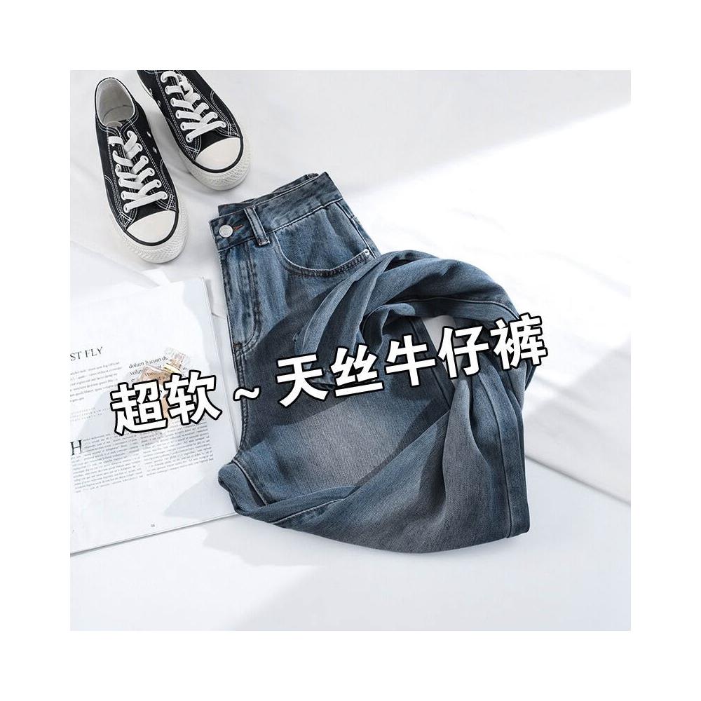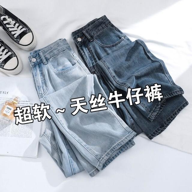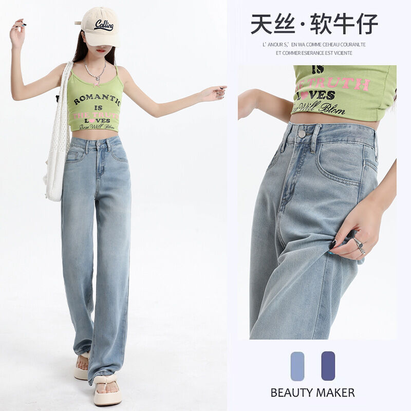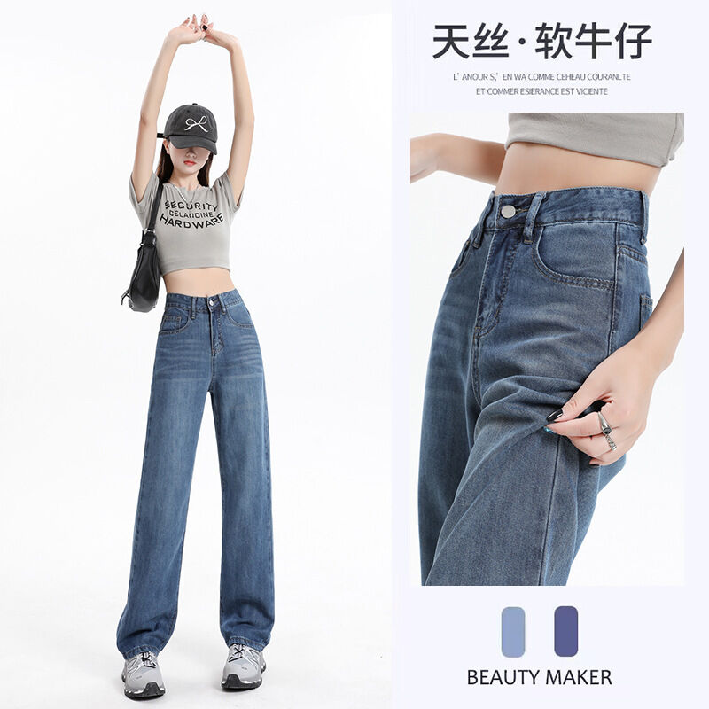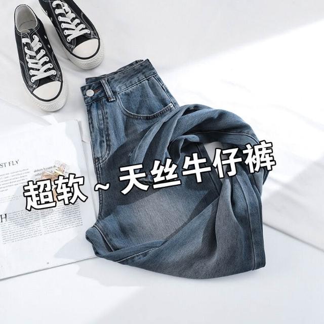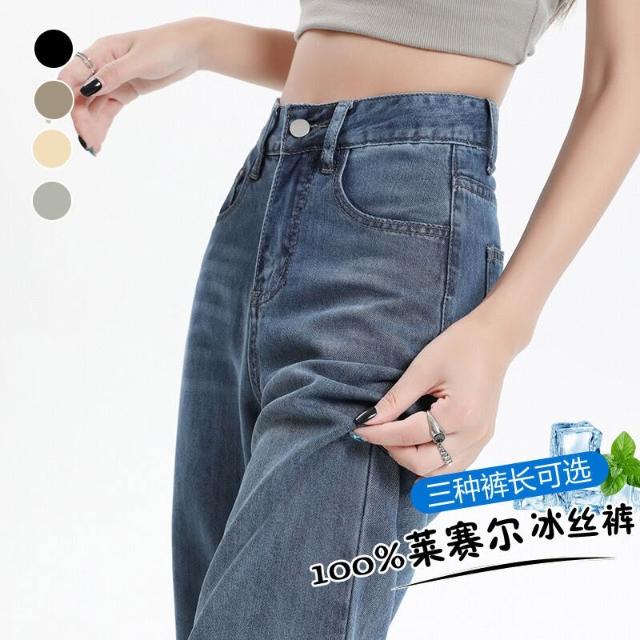 軟牛仔褲女窄版冰絲夏季薄款新款冰感天絲高腰垂感寬松直筒褲 ❤️