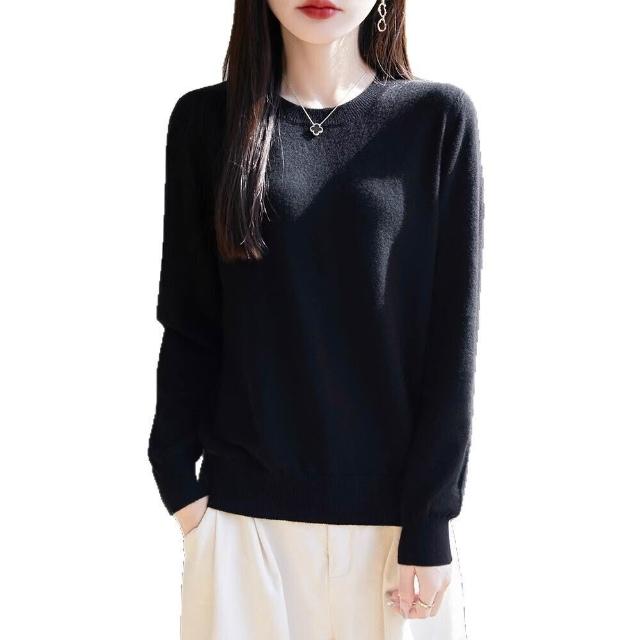 精品 春秋新款超細100羊毛女圓領短款寬松顯瘦針織打底衫薄款上衣女 🏅