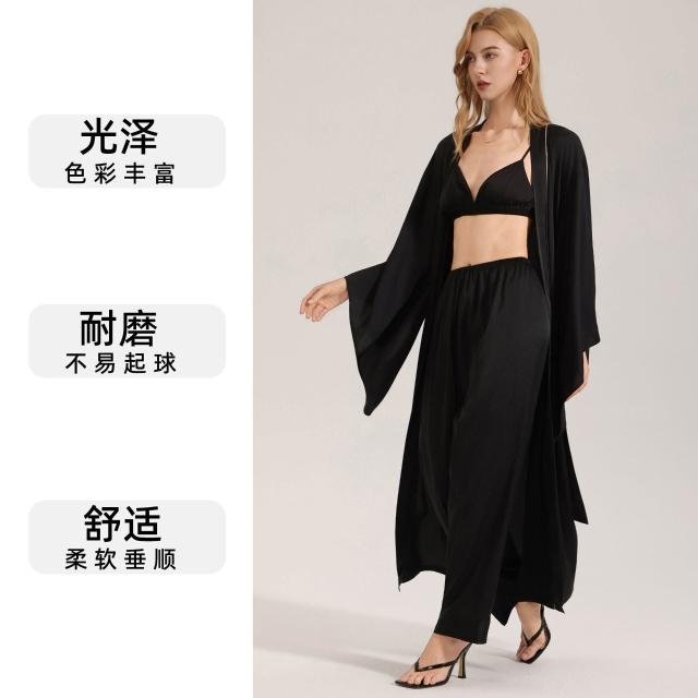 暖巢 睡袍套裝女新款緞面雪紡春長袍三件套女士家居服 超舒適