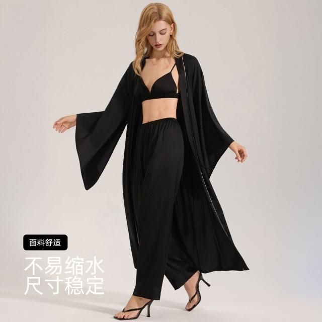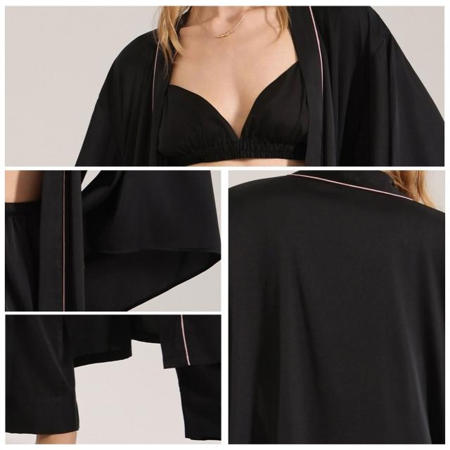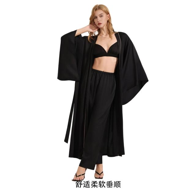 暖巢 睡袍套裝女新款緞面雪紡春長袍三件套女士家居服 超舒適