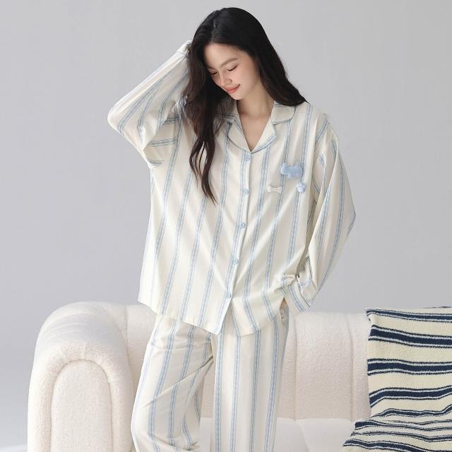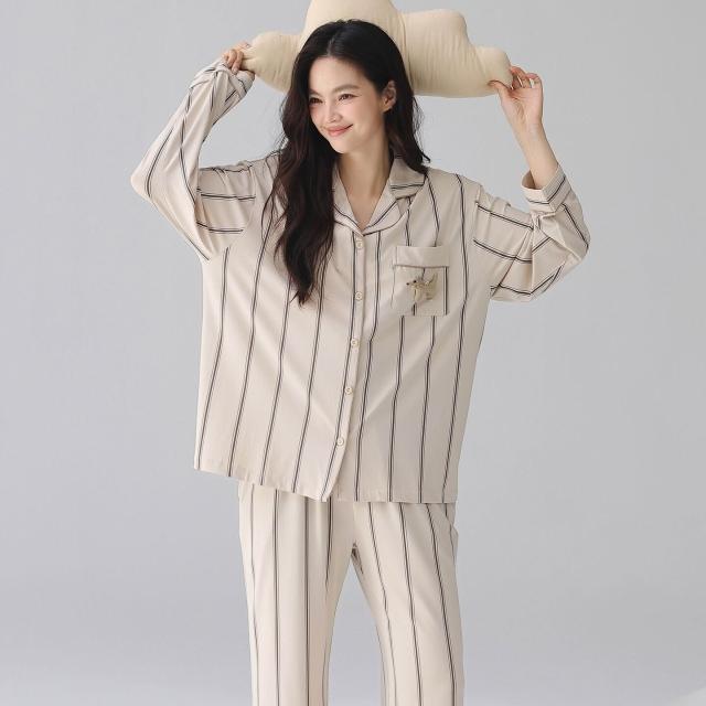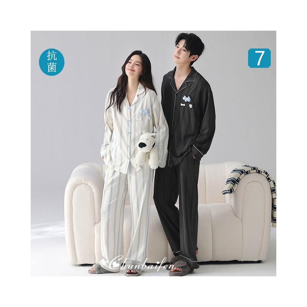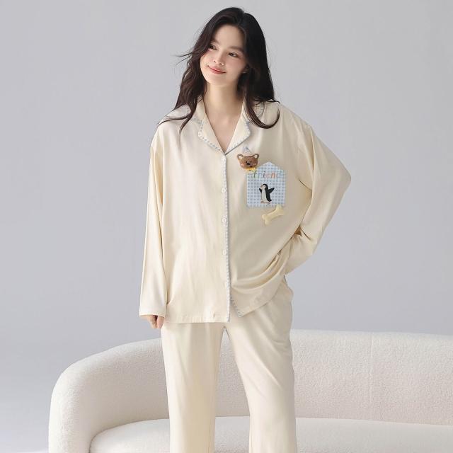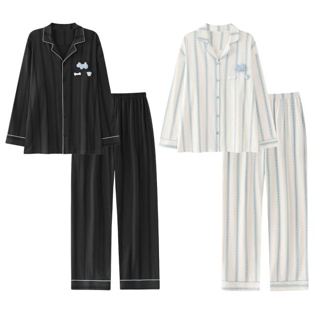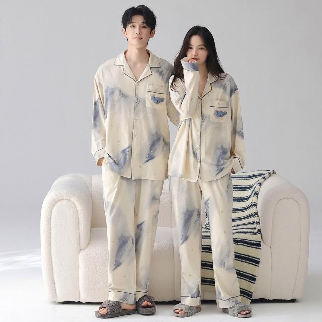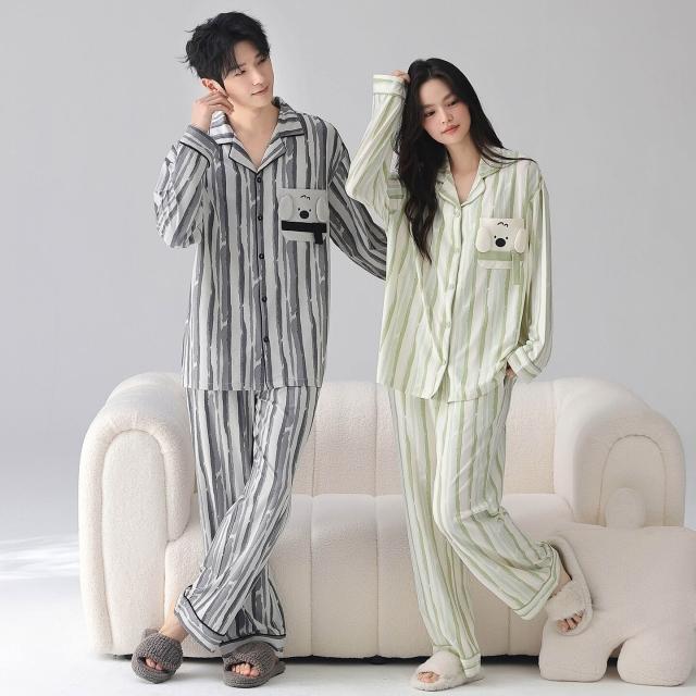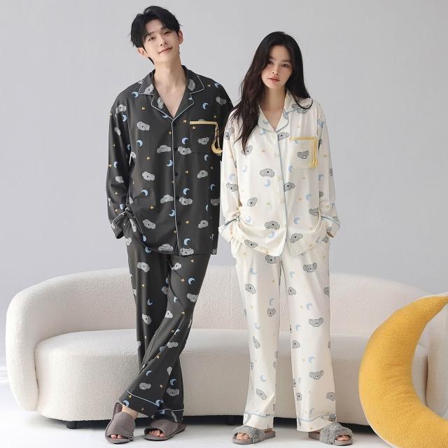 暖巢 春秋季新款長袖7A抗菌情侶睡衣女柔軟莫代爾棉家居服男士開衫套裝 超舒適