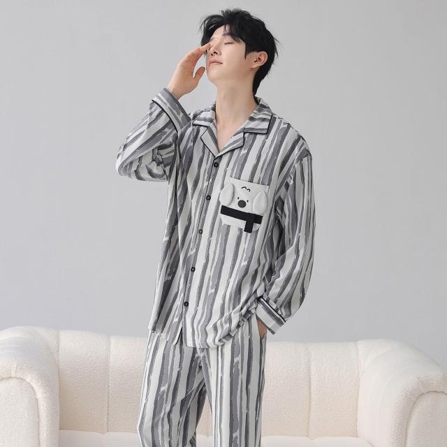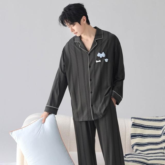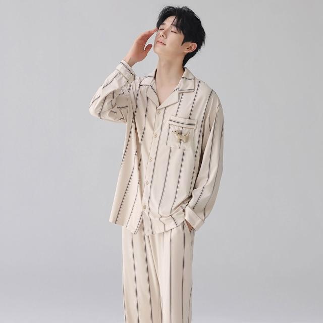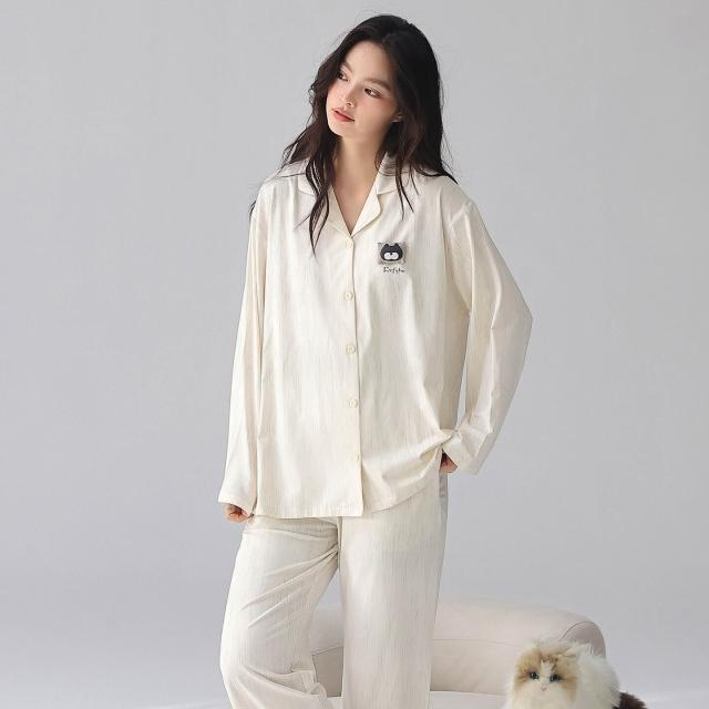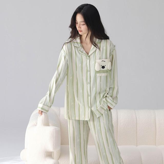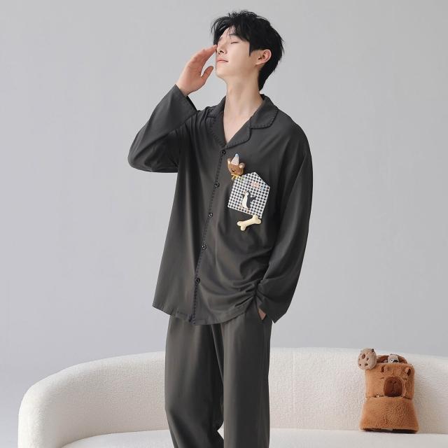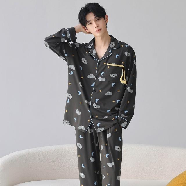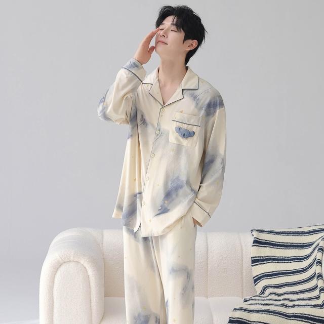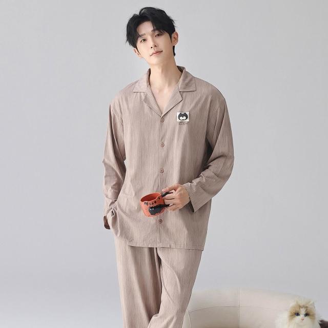 暖巢 春秋季新款長袖7A抗菌情侶睡衣女柔軟莫代爾棉家居服男士開衫套裝 超舒適