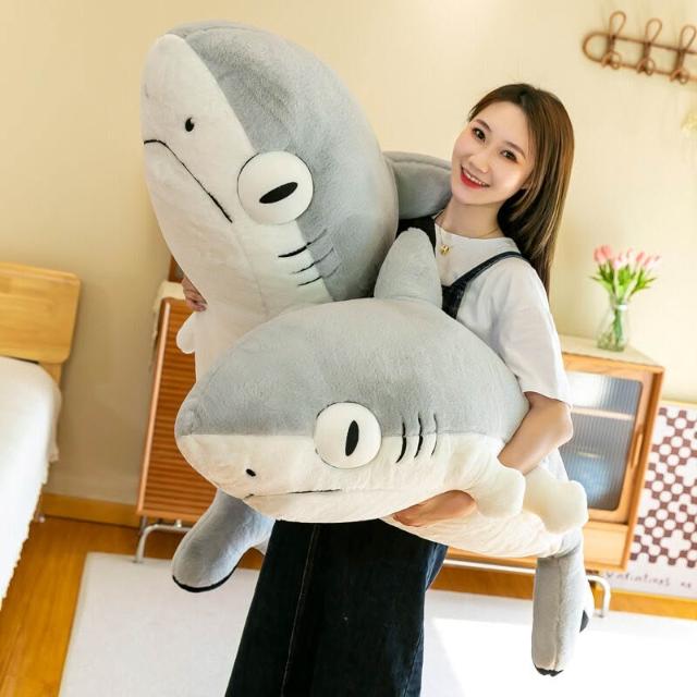 鲨魚抱枕床上安撫鲨貓玩偶睡覺抱枕毛絨玩具可愛大號公仔男女禮物 超舒服