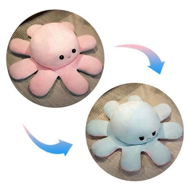 新款可愛大翻轉章魚公仔抱枕雙面翻轉變臉八爪魚玩偶生日禮物 超舒服