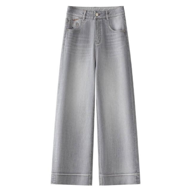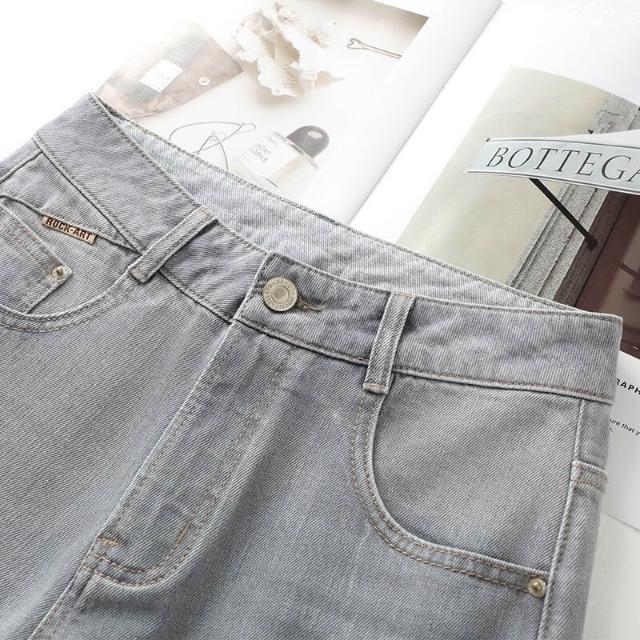 精品 煙灰色直筒牛仔褲女春秋新款小個子顯瘦寬松窄版闊腿九分褲子