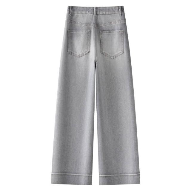 精品 煙灰色直筒牛仔褲女春秋新款小個子顯瘦寬松窄版闊腿九分褲子