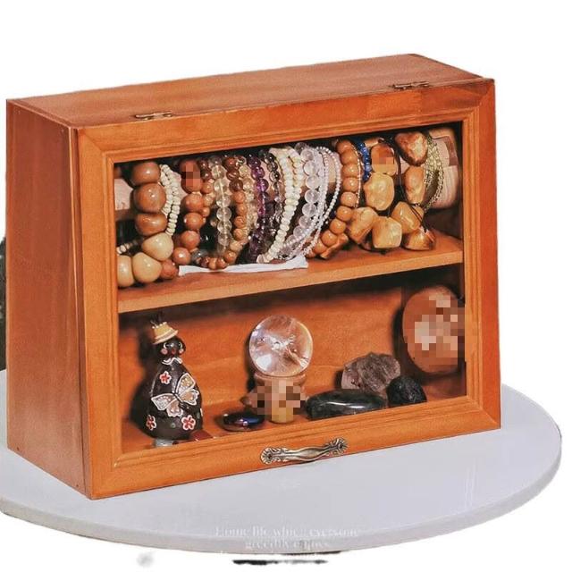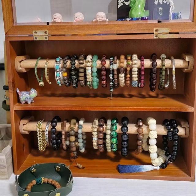 精品 手串收納盒桌面復古雙層實木首飾櫃防塵珠寶文玩水晶手鏈展示架子