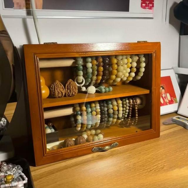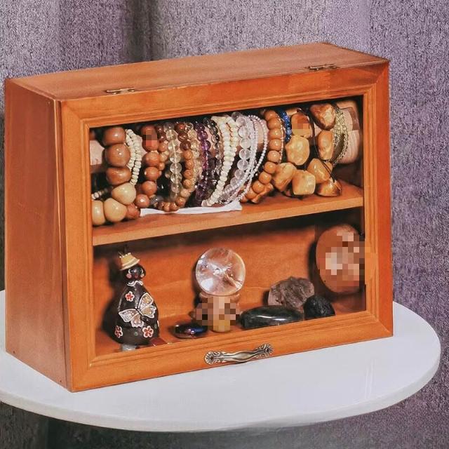 精品 手串收納盒桌面復古雙層實木首飾櫃防塵珠寶文玩水晶手鏈展示架子