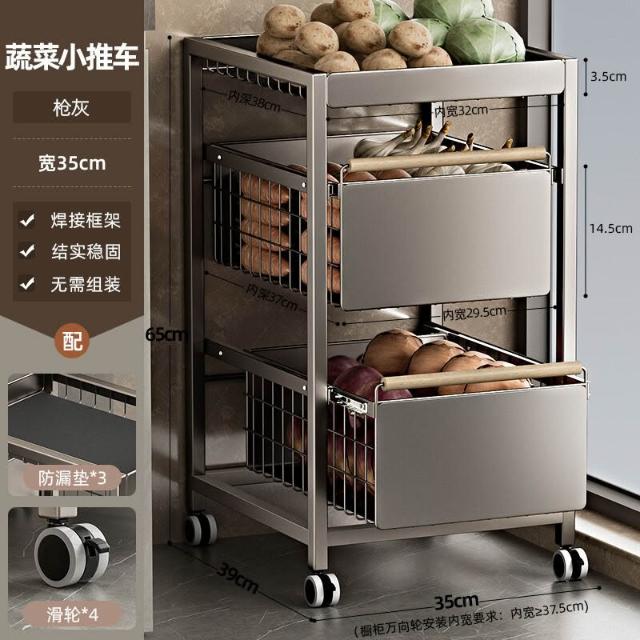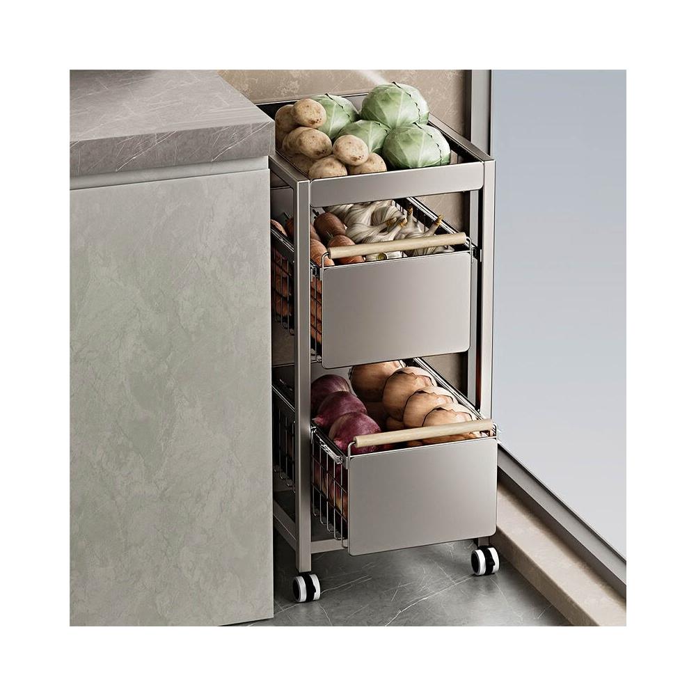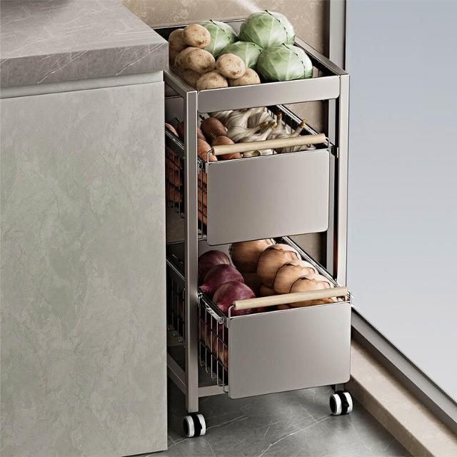 暖巢 廚房蔬菜置物架小推車抽屜式果蔬收納夾縫多層菜籃子現代簡約