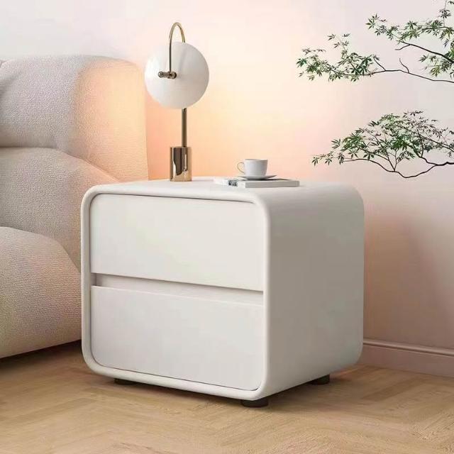 暖巢 奶油風床頭櫃臥室家用現代簡約高級感實木三層抽輕奢床邊儲物櫃子