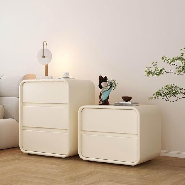 暖巢 奶油風床頭櫃臥室家用現代簡約高級感實木三層抽輕奢床邊儲物櫃子