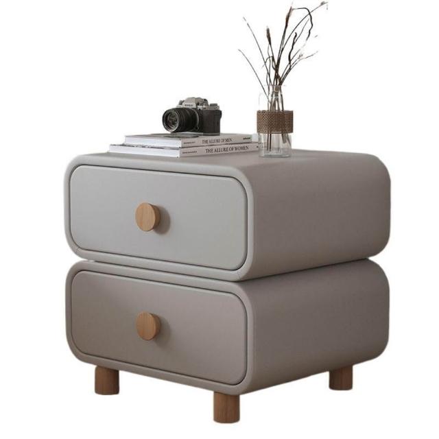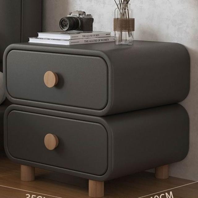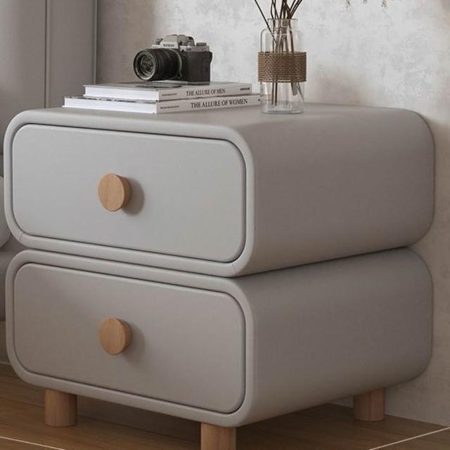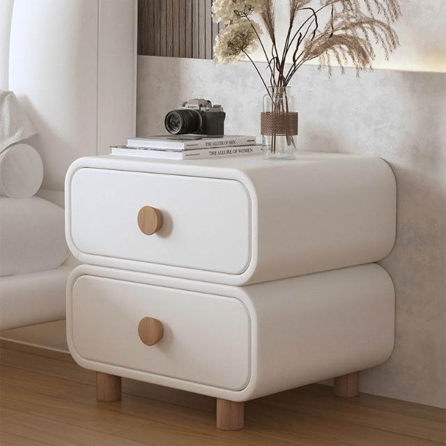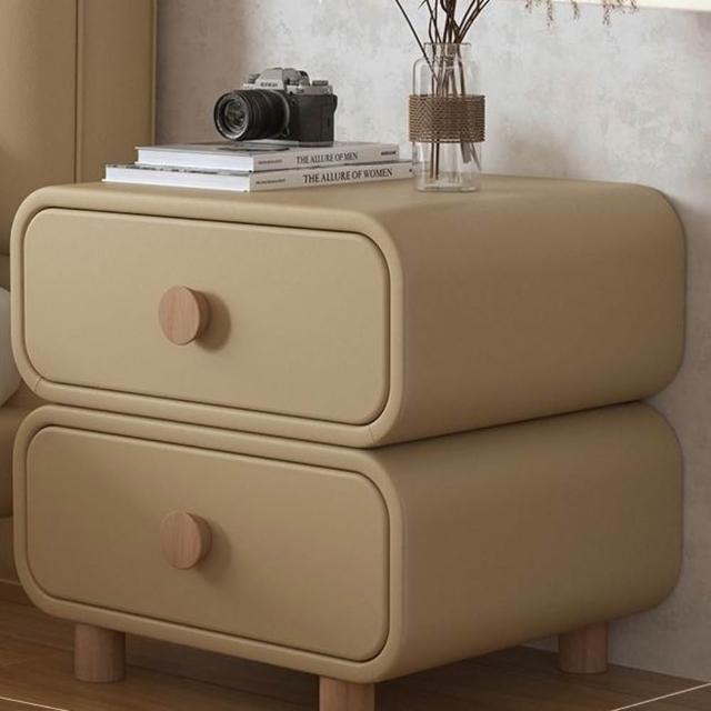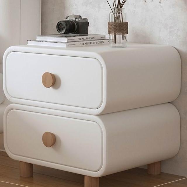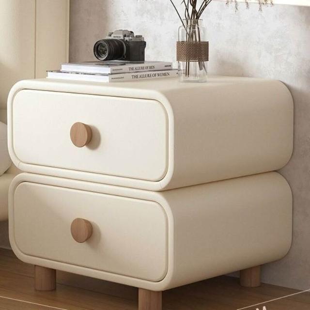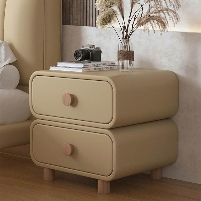 暖巢 奶油收納櫃臥室皮質簡約現代實木簡易免安裝風小型極床邊櫃床頭櫃