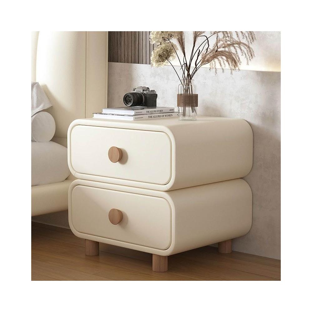 暖巢 奶油收納櫃臥室皮質簡約現代實木簡易免安裝風小型極床邊櫃床頭櫃