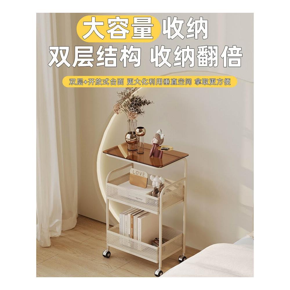 暖巢 可移動小推車家用臥室收納架客廳邊幾多層奶油風置物架床頭櫃茶幾