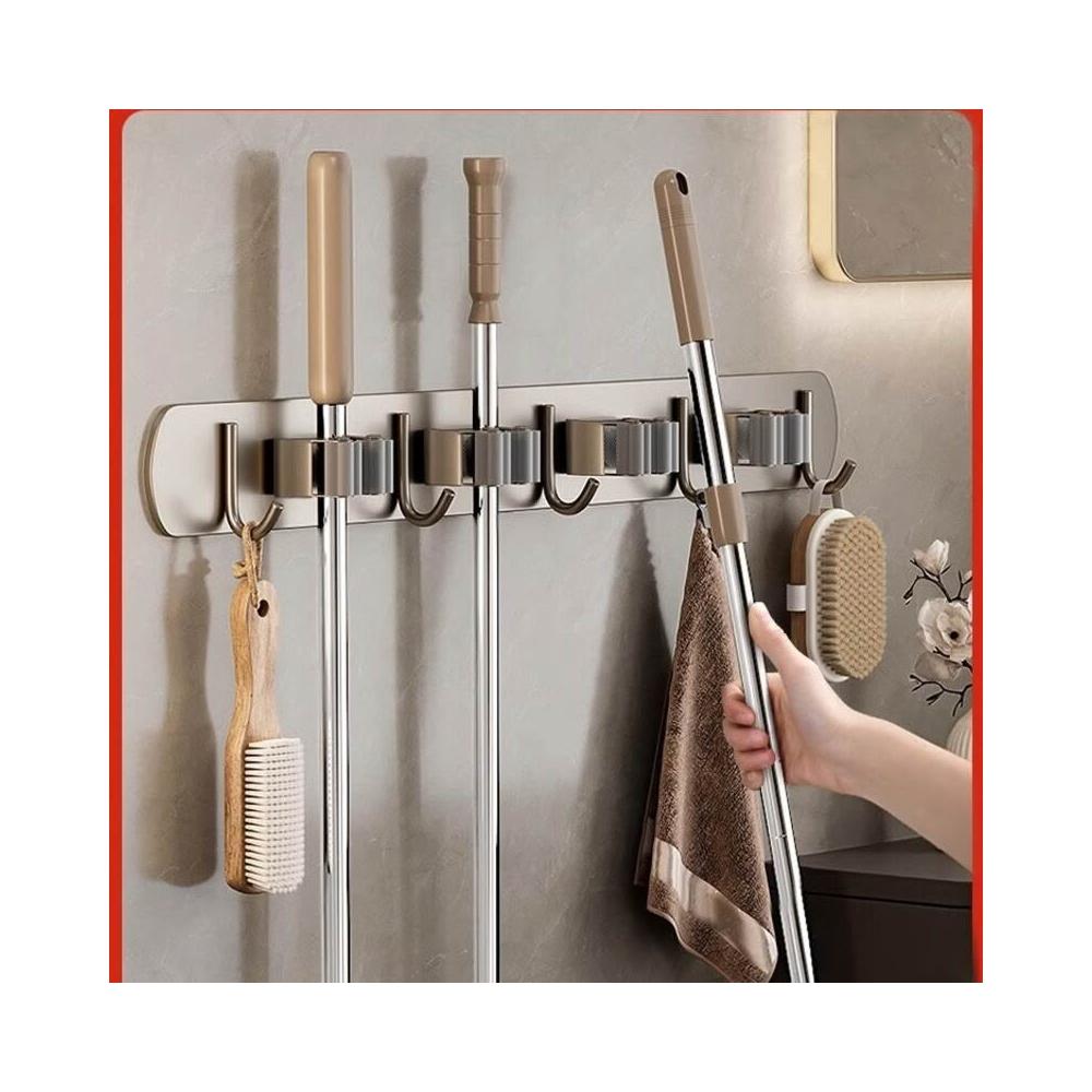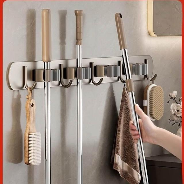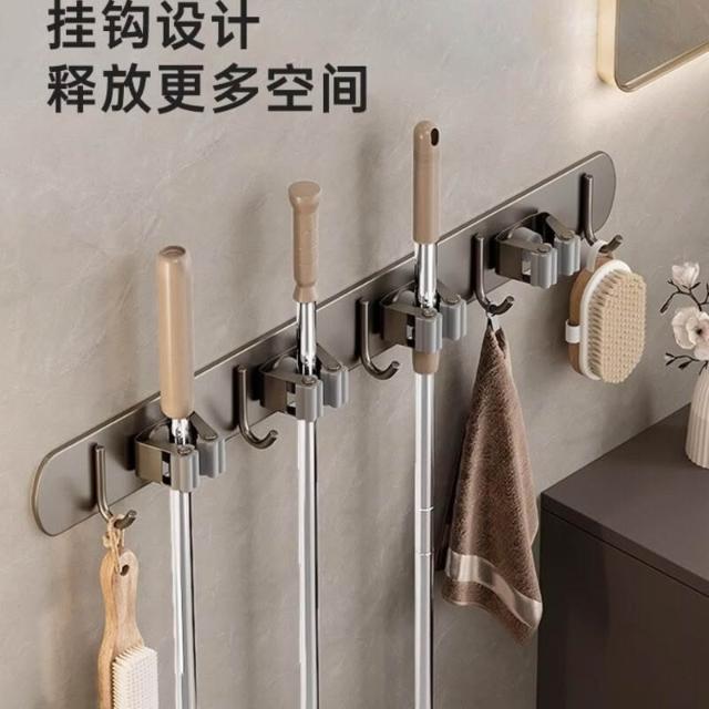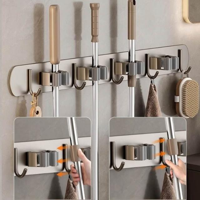 新品下殺🔥 拖把壁掛夾架 免打孔掛鉤 陽臺掛鉤 浴室衛生間排掛 卡扣固定掃把置物 收納掛架