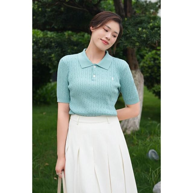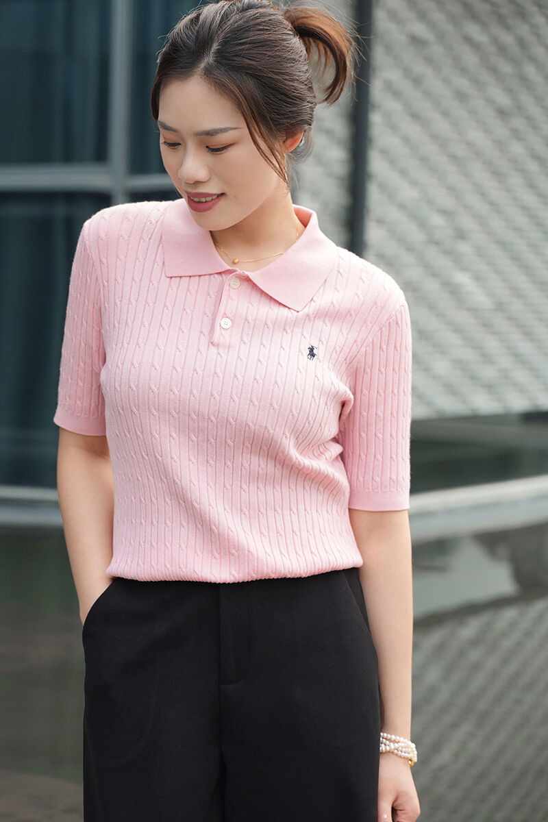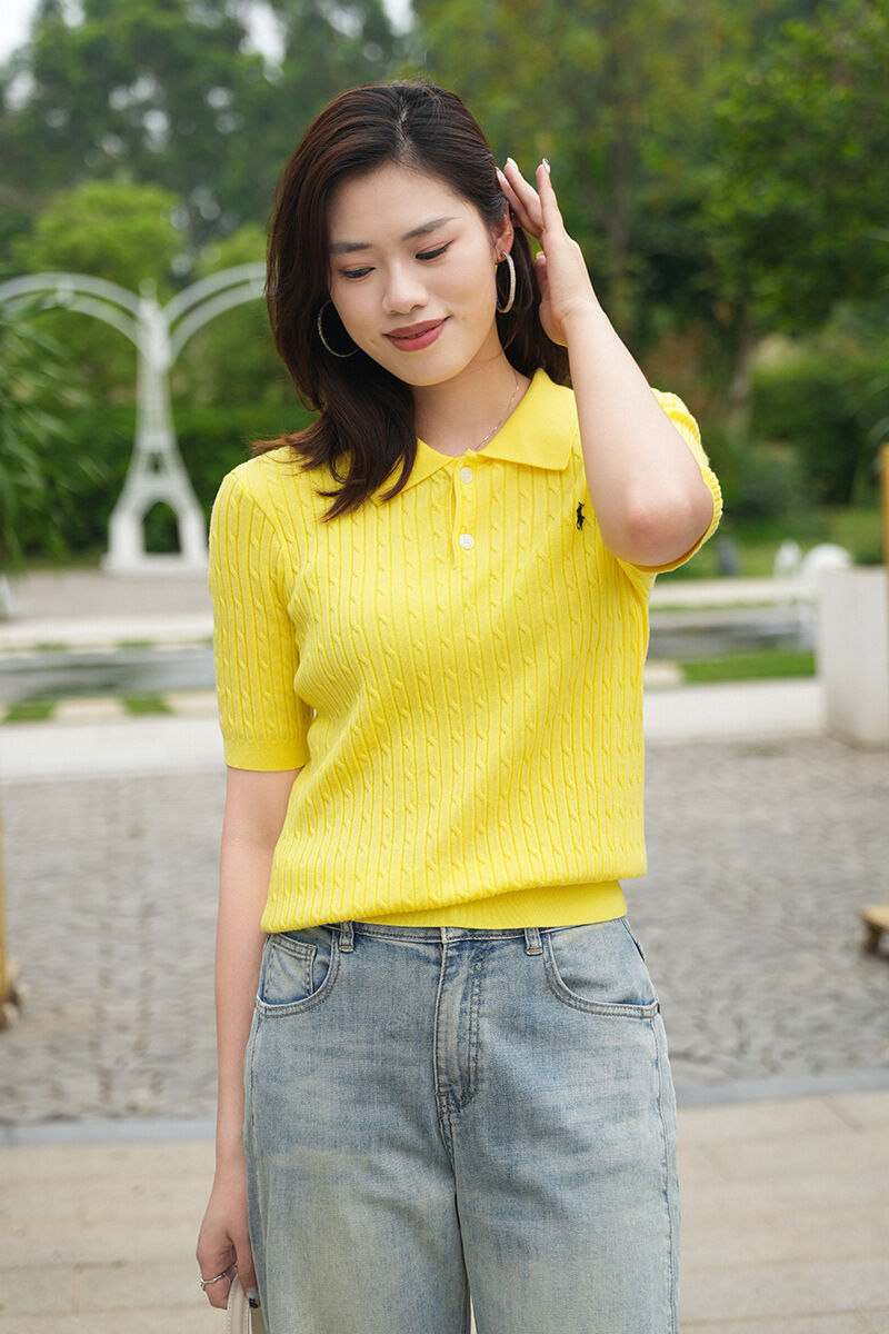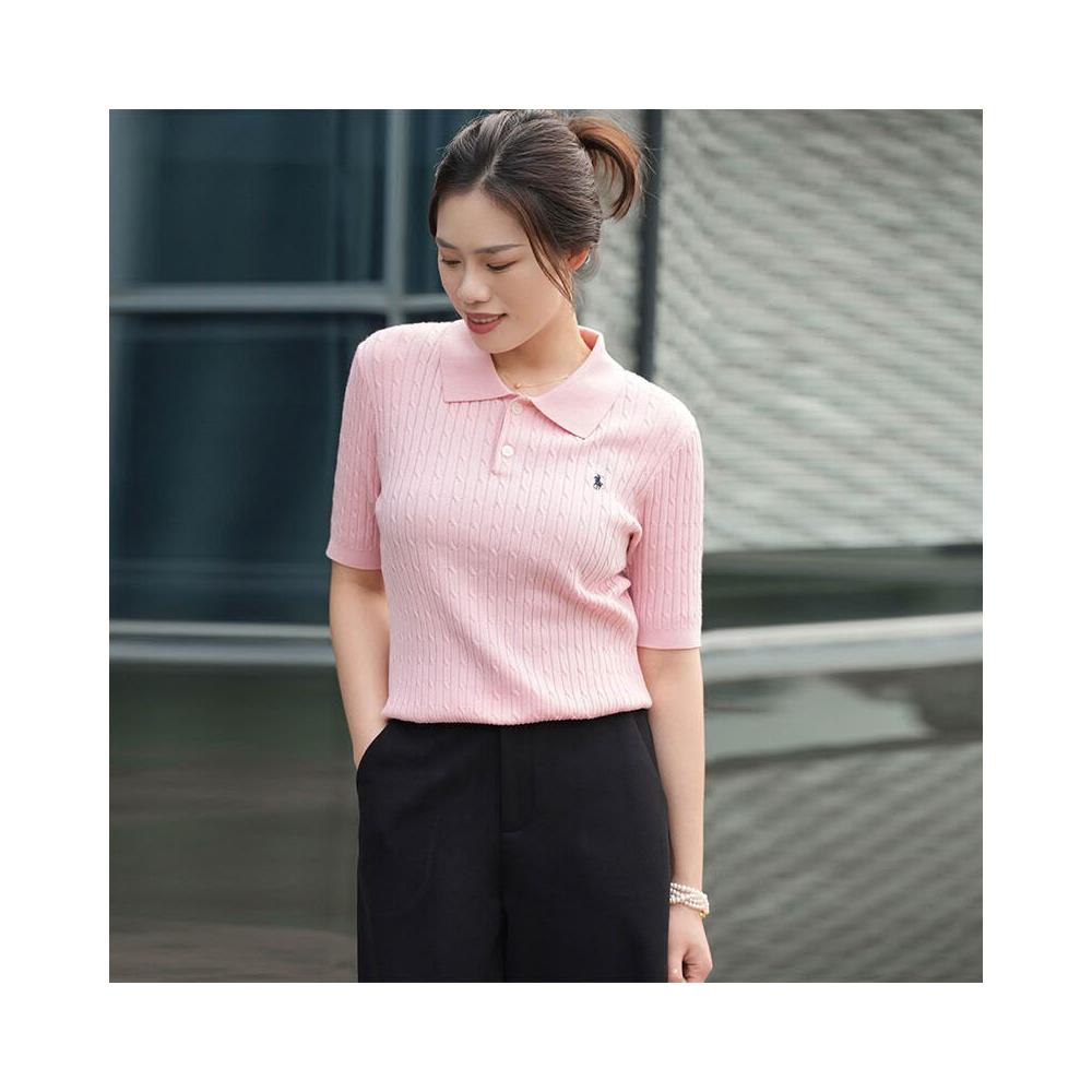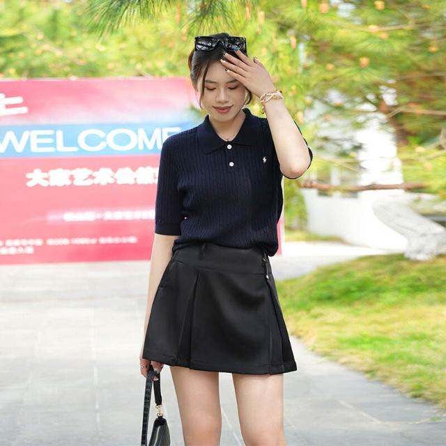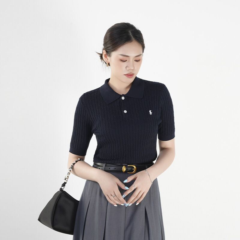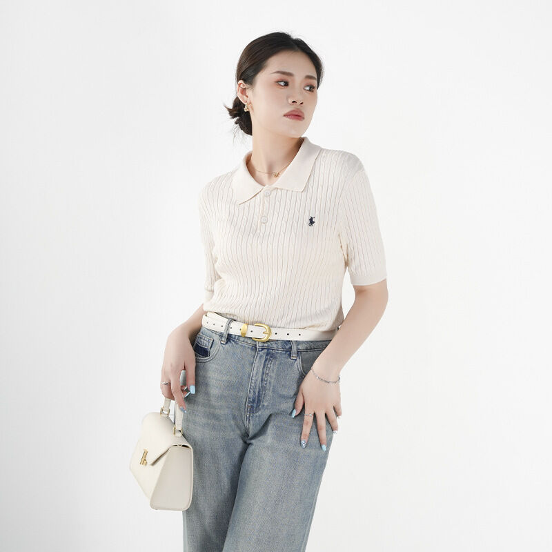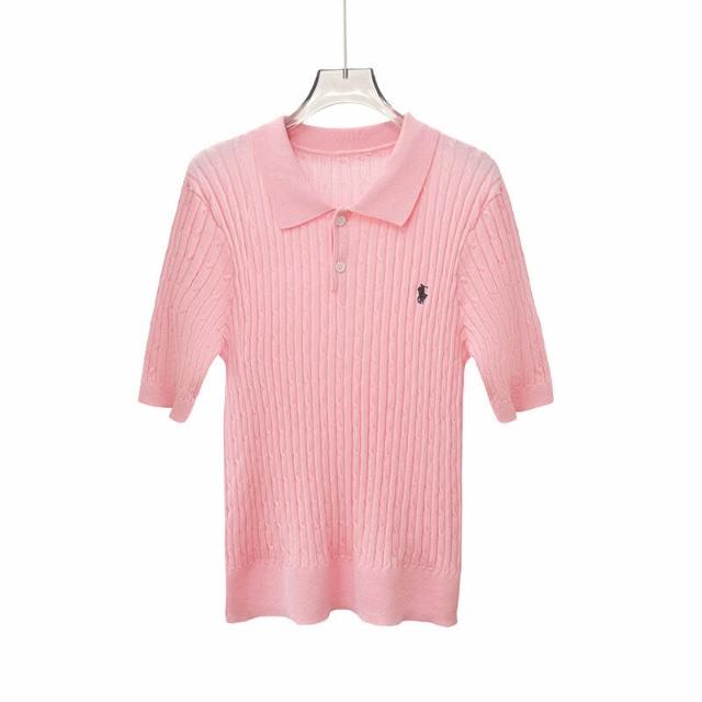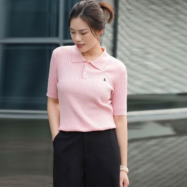 針織衫短袖女夏季薄款POLO領小馬刺繡打底衫天絲顯瘦套頭純色上衣