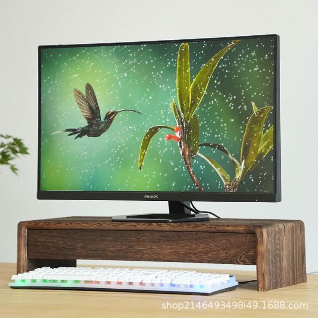 新品下殺 實木電腦顯示器增高架桌面魚缸增墊高架子帶抽屜顯示器增高架花架