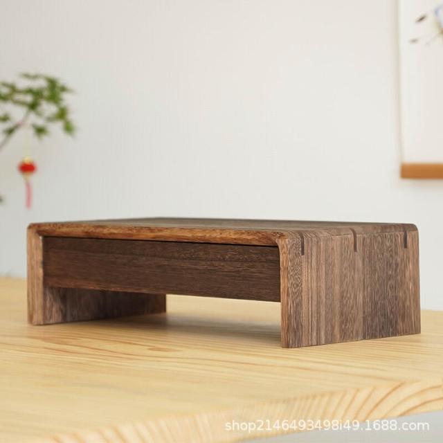 新品下殺 實木電腦顯示器增高架桌面魚缸增墊高架子帶抽屜顯示器增高架花架